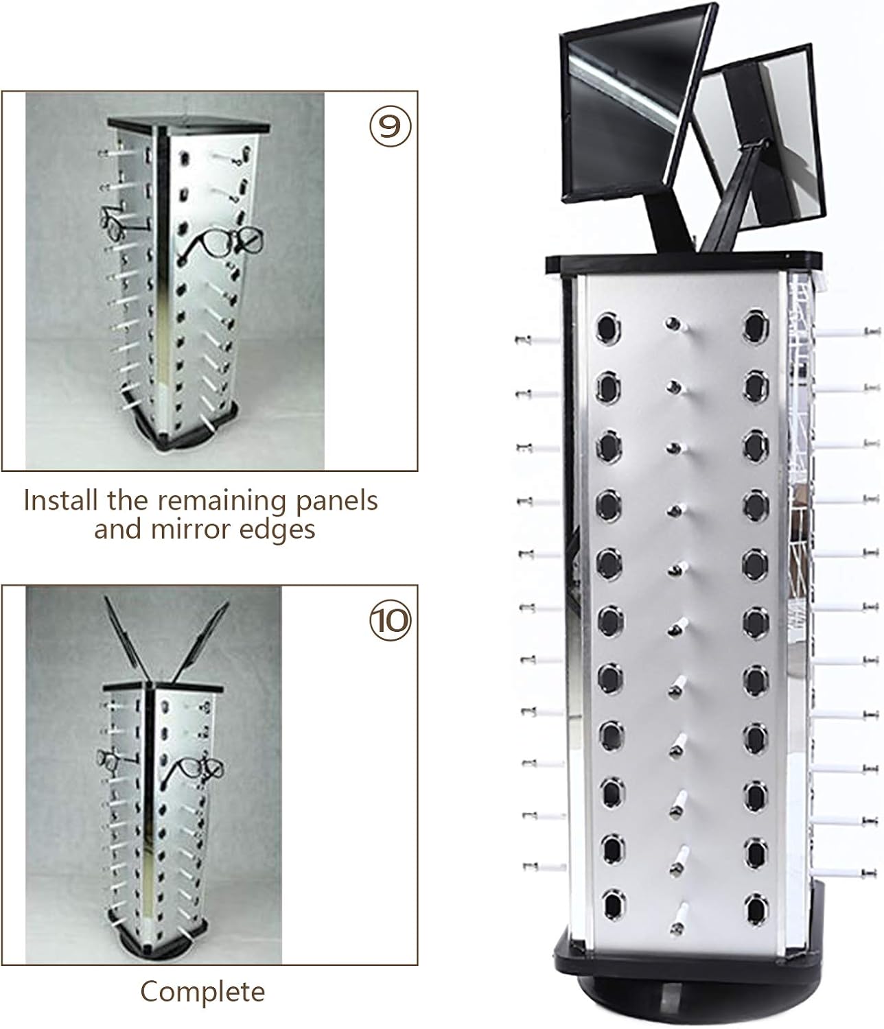 【Adjustable Twin-View Mirror】This sun shades holder comes with two adjustable mirrors, making the glasses extra handy and simpler to strive on.Secure and dependable base not straightforward to shake or drop and small footprint. For retail show, store show, house storage glasses collector.