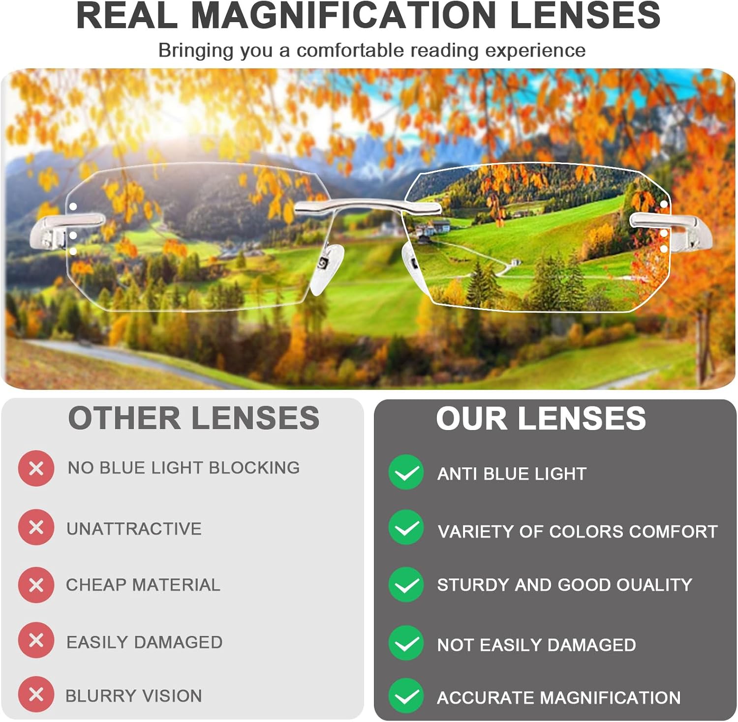 Single Vision Reading Glasses for Women and Men Anti-Glare Blue Light Blocking Rimless Readers UV Fashion Eyeglasses