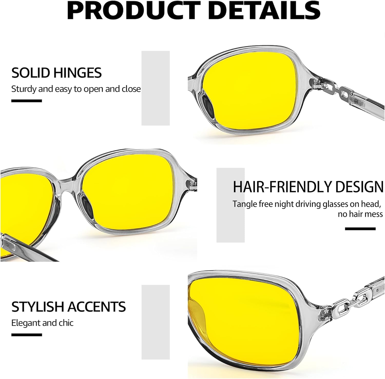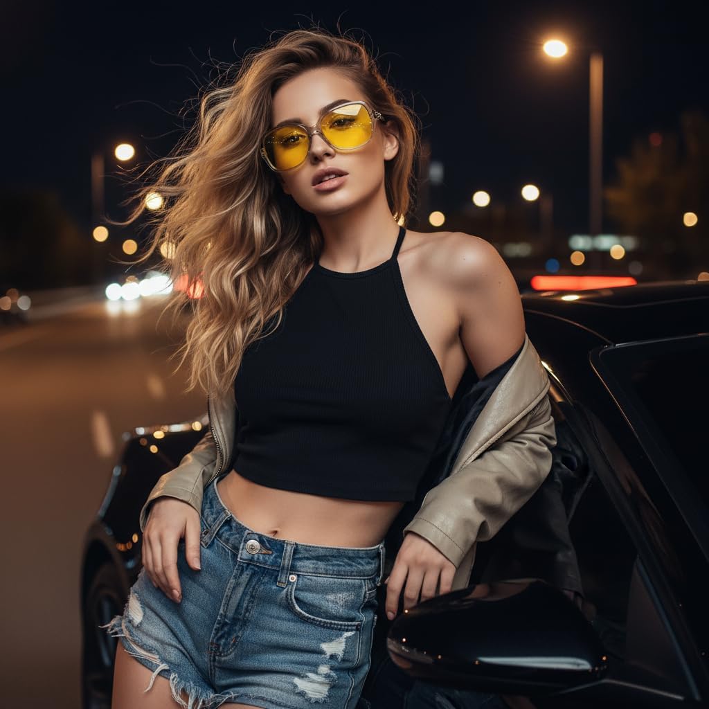 SIPHEW Night Driving Glasses for Women, Polarized Anti-Glare Yellow Lens Reduces Headlight Glare & Eye Strain for Nighttime