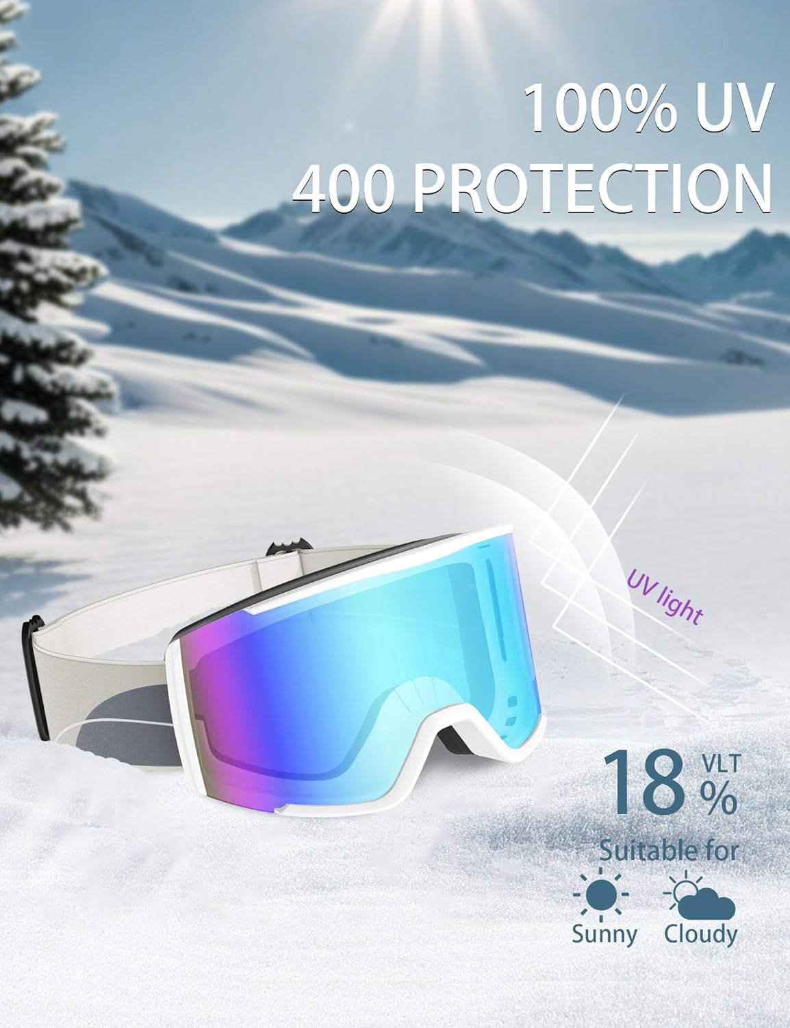 4.Our males/ladies ski goggles are 180 mm / 7.08 inches lengthy and 100 mm / 3.94 inches broad, appropriate for most individuals comparable to males,ladies and youngsters.