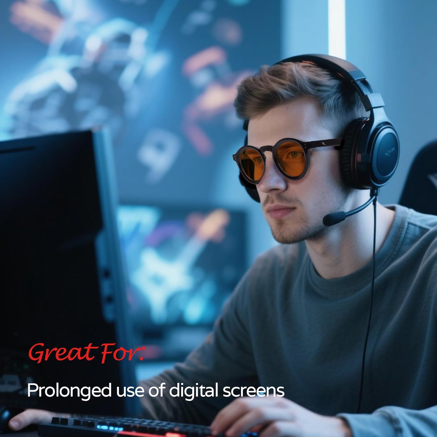 Sleep Blue Light Blocking Glasses for Men and Women, Retro Round Frame Computer Gaming Glasses Anti Eyestrain & UV Glare JF6209 (Orange Lens Black Frame)