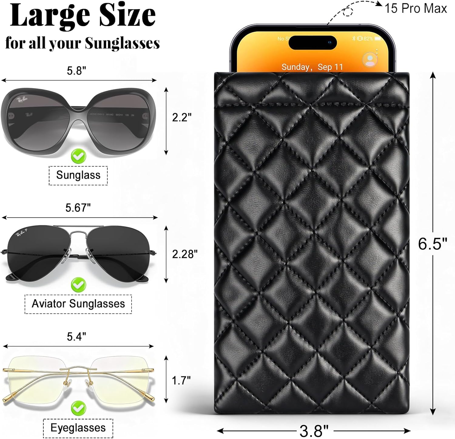 Soft Glasses Case 2 Pack, Leather Eyeglass Case with Squeeze Top, Sunglass Case with Cleaning Cloth for Women
