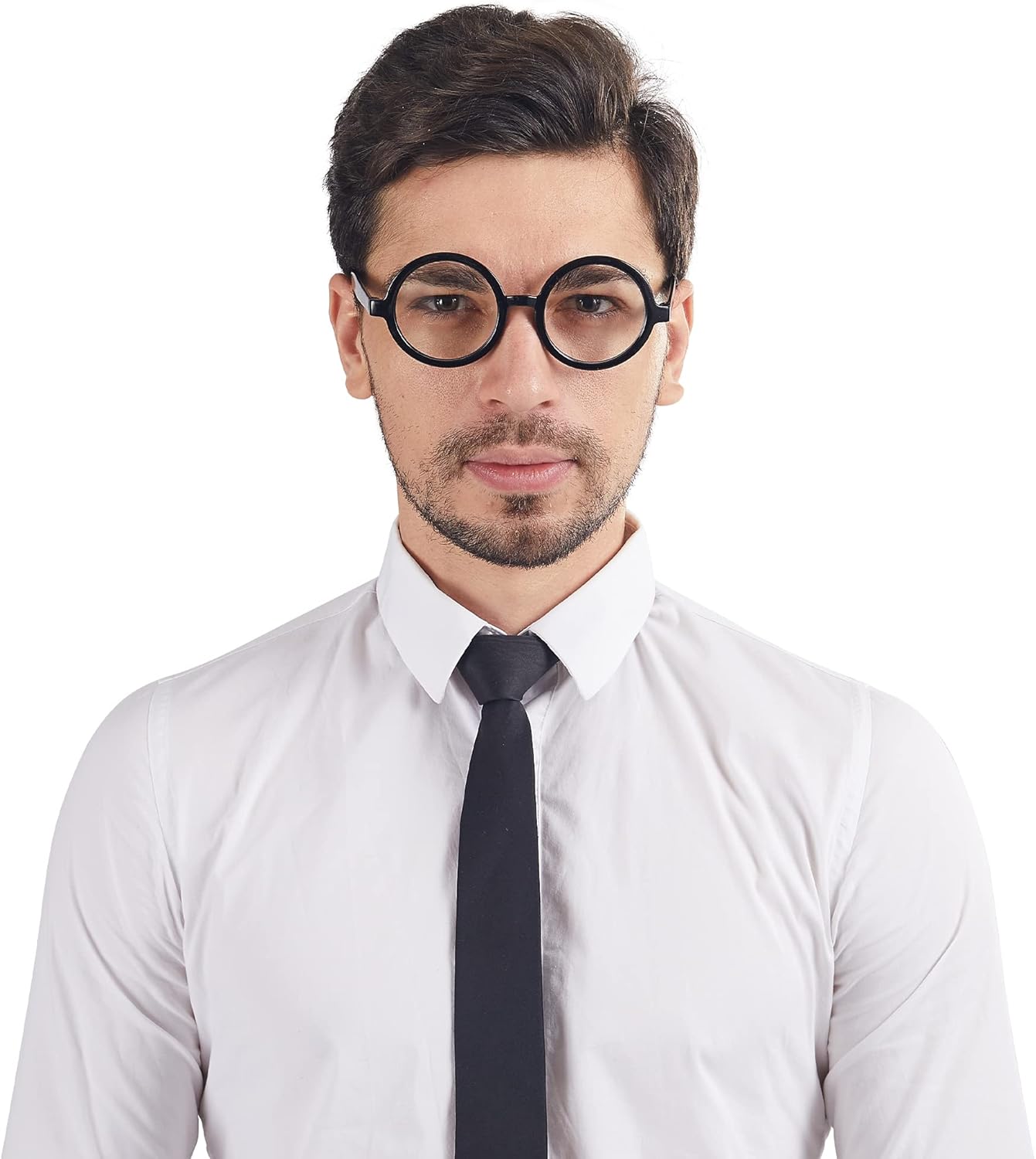 Spooktacular Creations Wizard Glasses, Halloween Black Round Glasses, Black Circle Eyeglasses for Kids & Adults Halloween Accessories Costume
