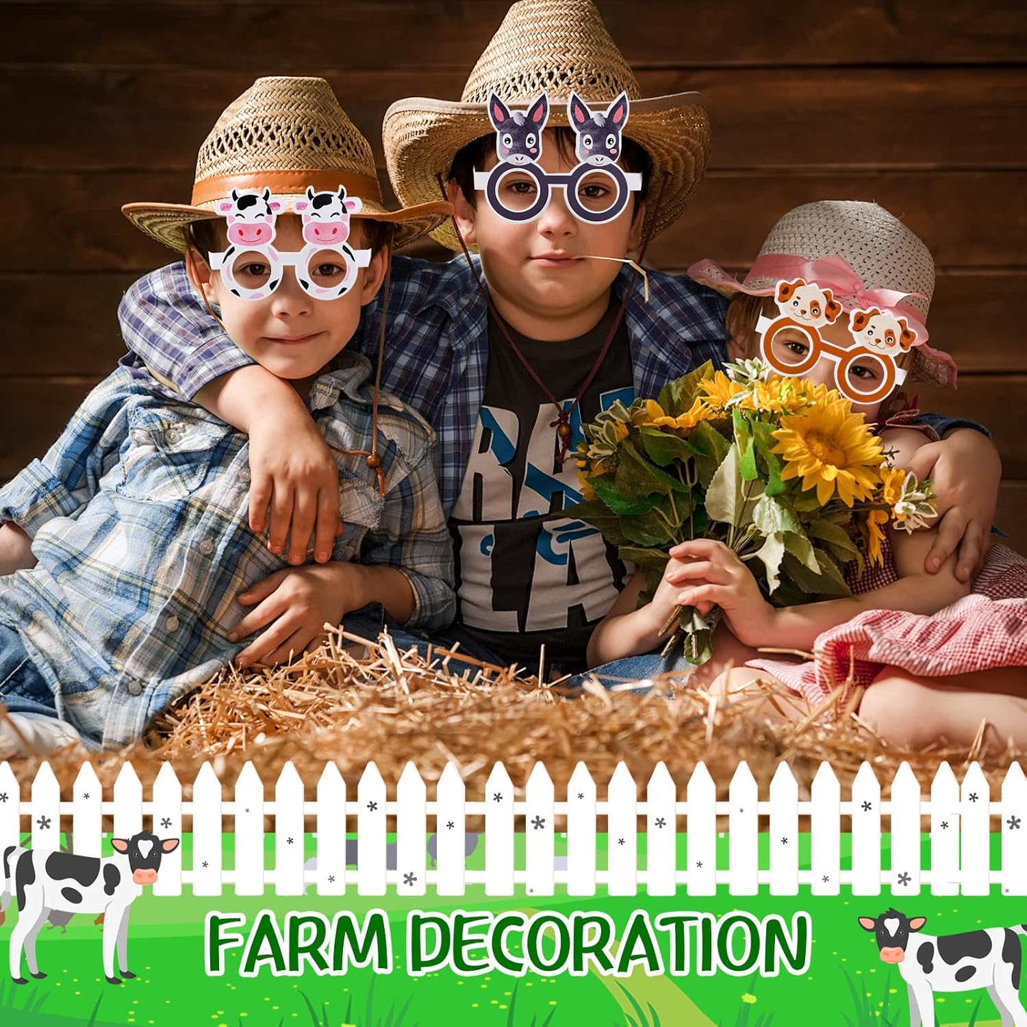 Sratte 24 Pieces Farm Animal Glasses Barnyard Paper Frame Animal Eyeglasses Farmhouse Funny Eyewear for Farm Themed Birthday Party Costume Supplies