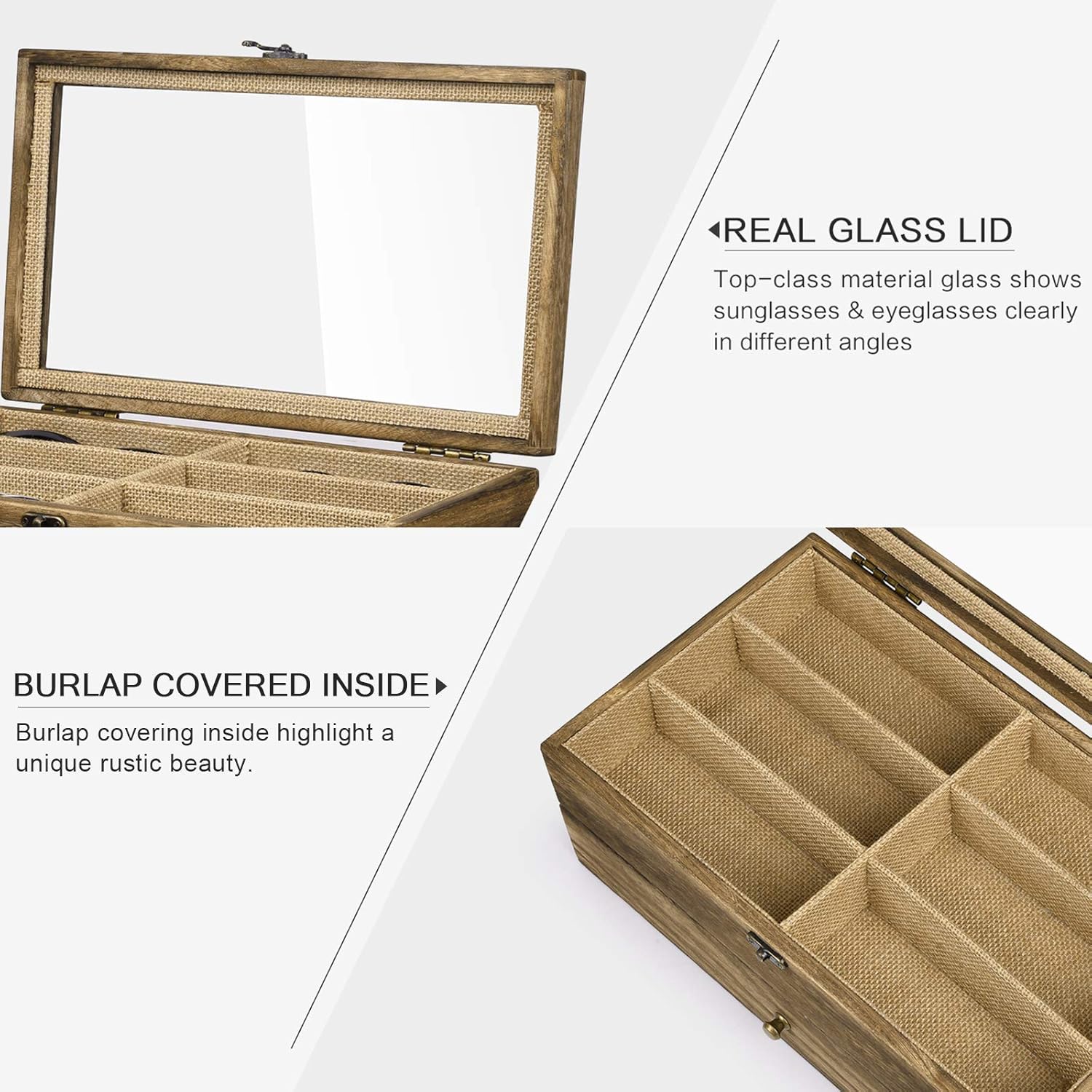 SRIWATANA Sunglasses Case Organizer for Women Men, 12 Slot Wood Eyeglass Eyewear Display Box with Glass Top, Gifts for Loved One, Carbonized Black