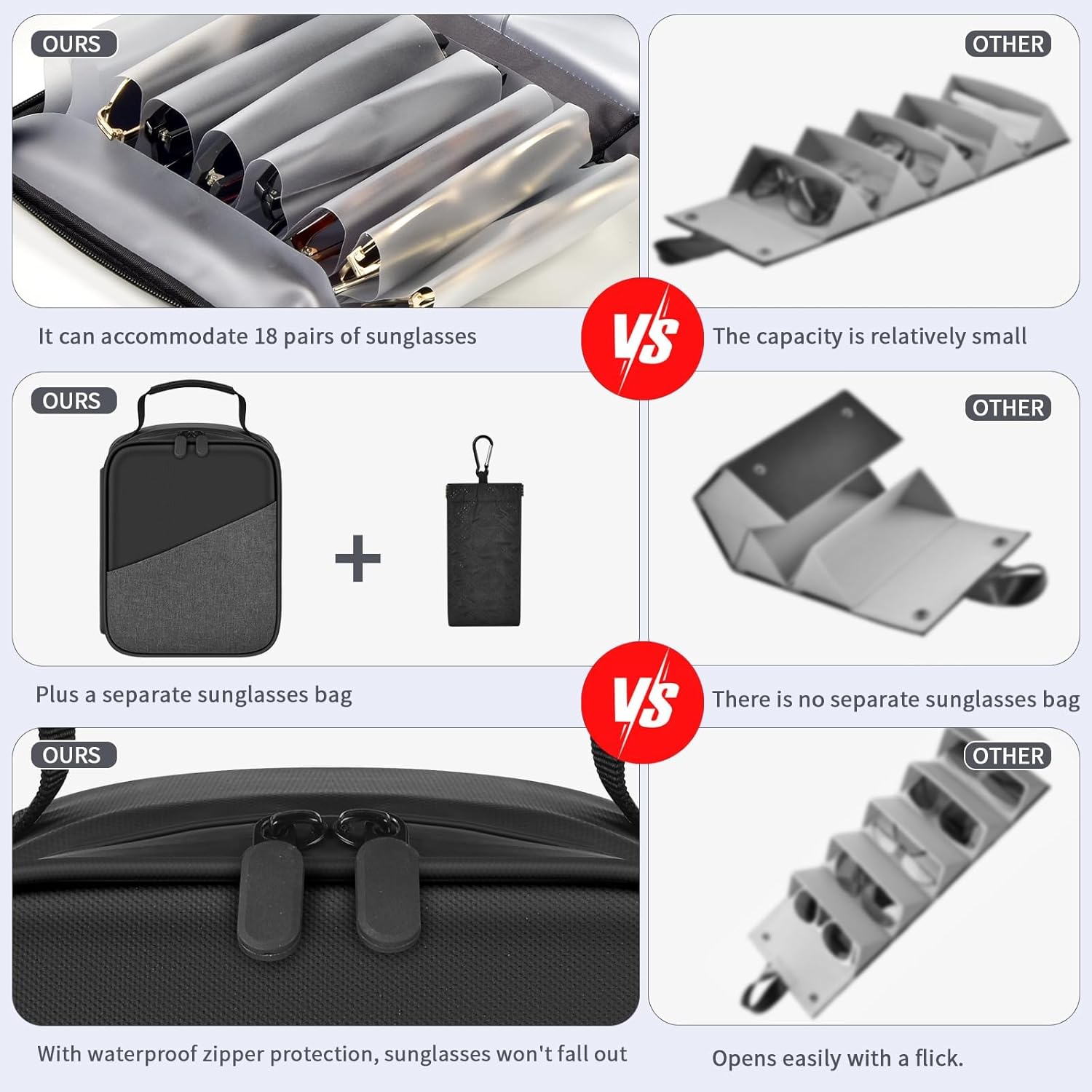 Sunglasses Organizer Case Holds 18 Pairs, Multiple Eyeglasses Storage Bag for Women Men, Polarized Sunglass Portable Travel Holder Attached One Squeeze-top Pouch for Travel(Glasses not included)