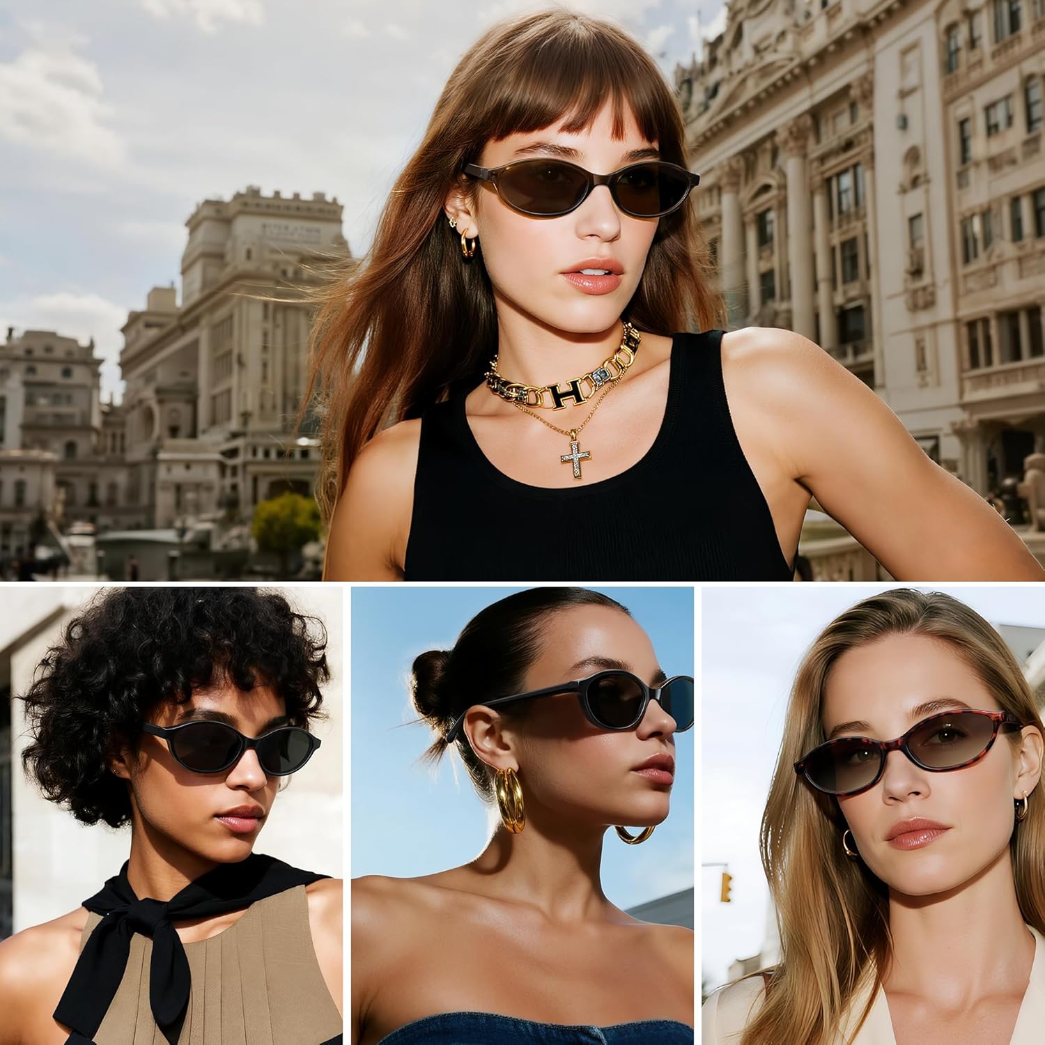 Retro Oval Cat Eye Sunglasses for Women 90s Y2K Narrow Lightweight Vintage Style UV ProtectionRetro Oval Cat Eye Sunglasses for Women 90s Y2K Narrow Lightweight Vintage Style UV Protection