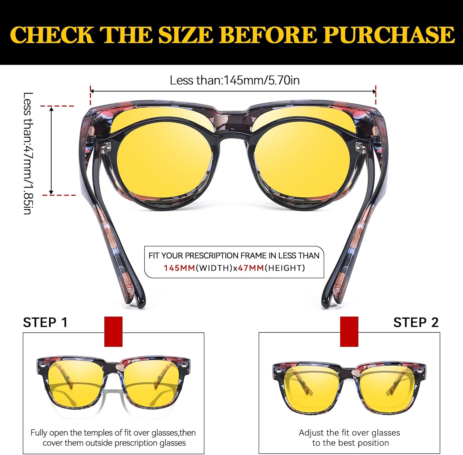 How can I be certain these TJUTR evening imaginative and prescient glasses will match over my prescription glasses?