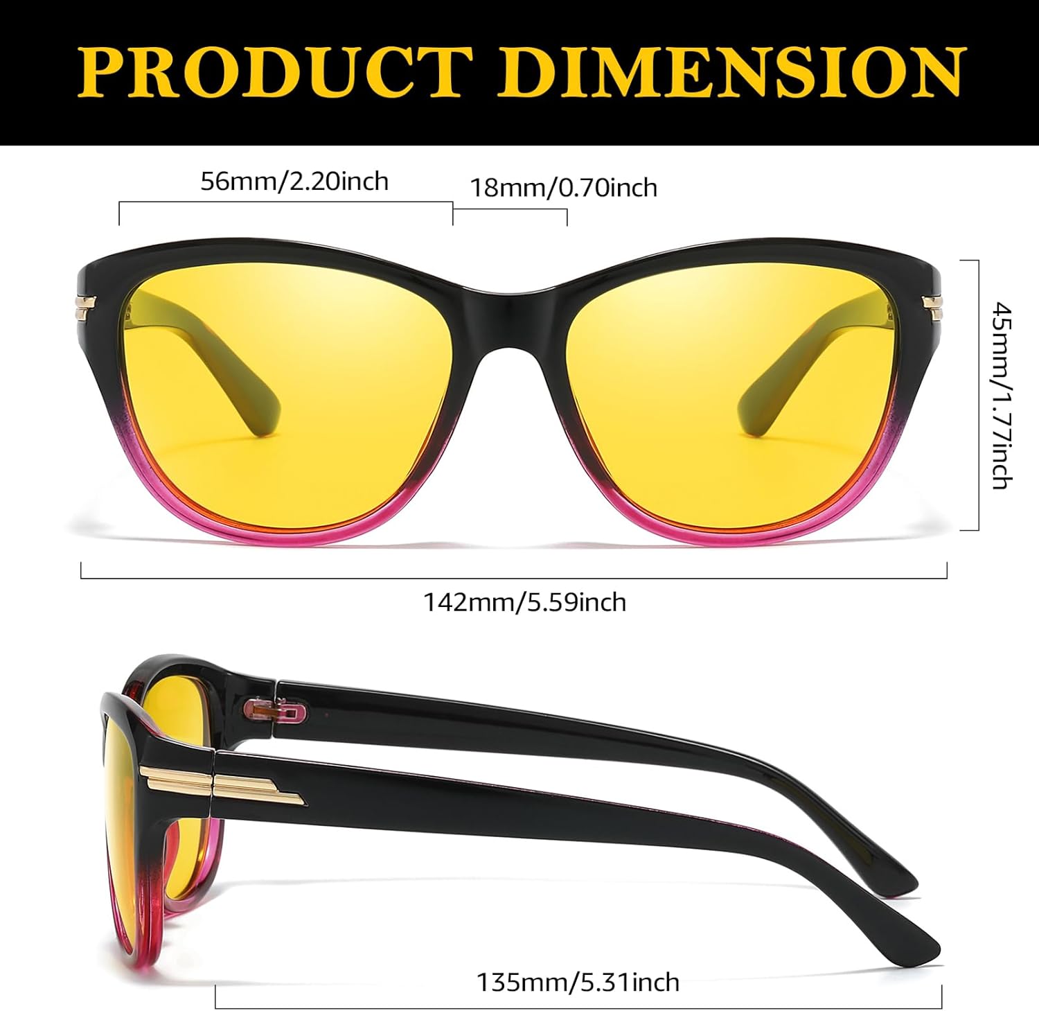 TJUTR Women’s Night Vision Glasses for Driving, Polarized Yellow Lens Glasses for Night time Anti Glare TN2517