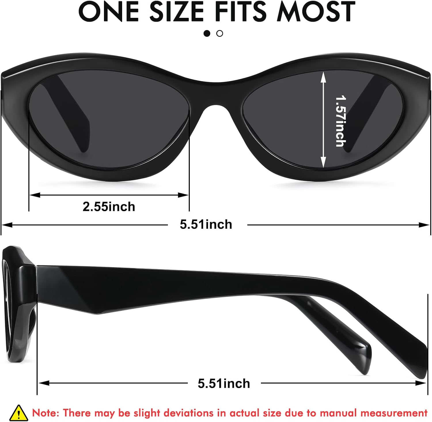 Trendy Oval Sunglasses for Women Retro Small Cat Eye Glasses 90s Shades