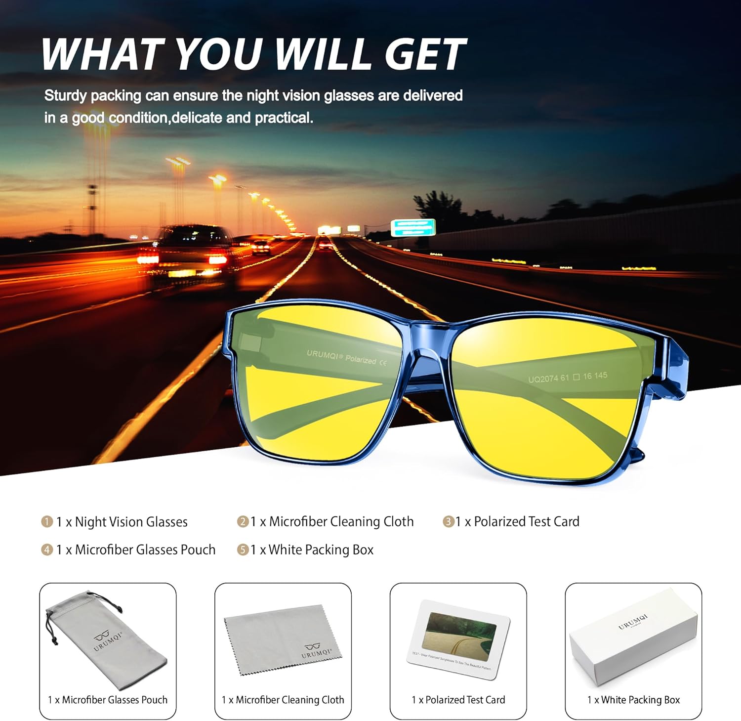 1. URUMQI night time imaginative and prescient glasses are appropriate for night time driving or particular climate comparable to fog, cloudy, rain and different low-light circumstances!