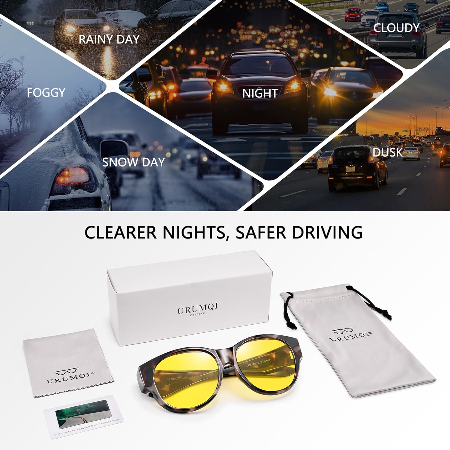 URUMQI Night Vision Driving Glasses Fit Over Eyeglasses for Women Cat Eye, Anti Glare Polarized Nighttime Glasses Yellow Lens