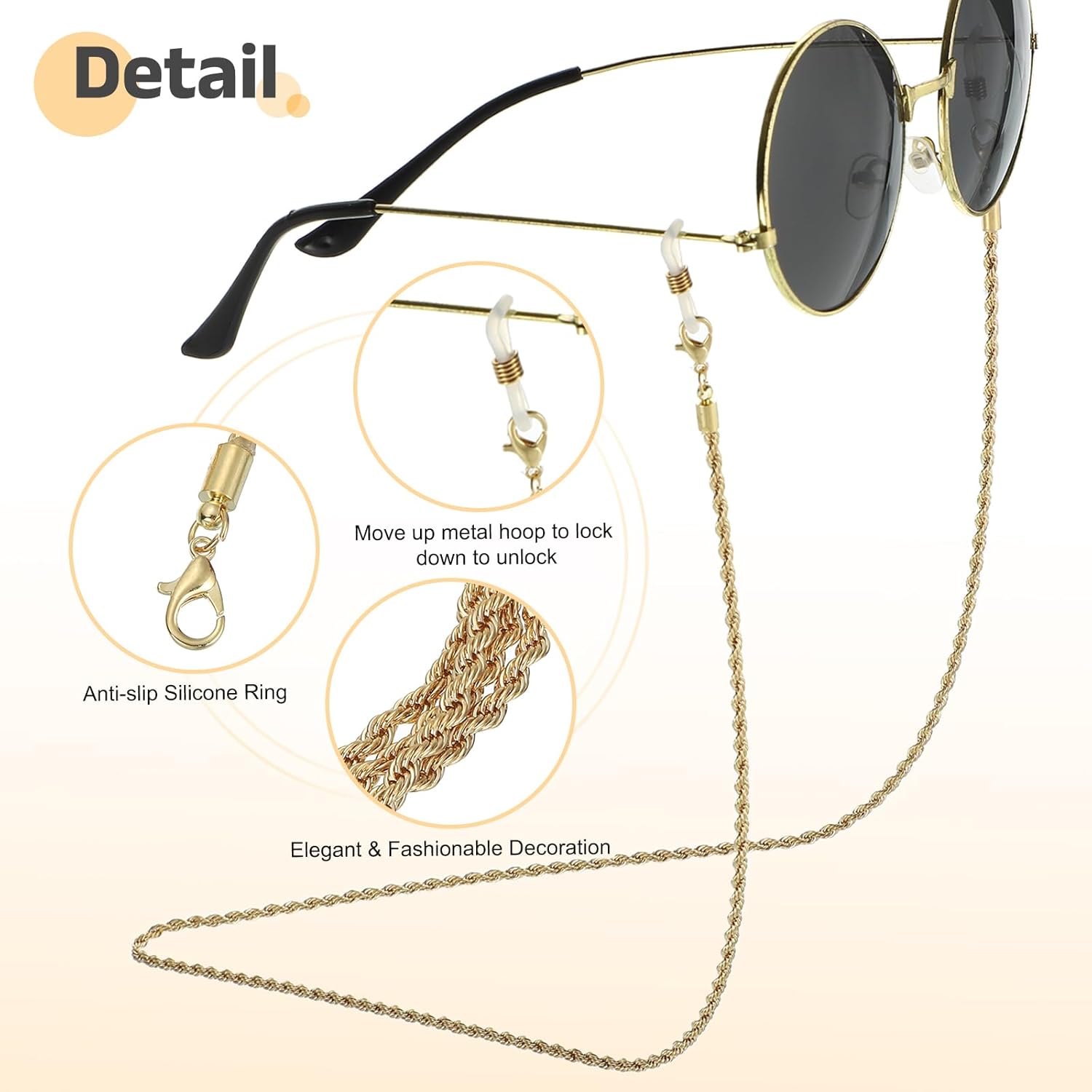 [Material] – This glasses fixing chain is fabricated from alloy, with beautiful look and is light-weight, and it has the traits of non-fading, non-scratch and non-deformation, which may be sturdy and really appropriate for every day put on.