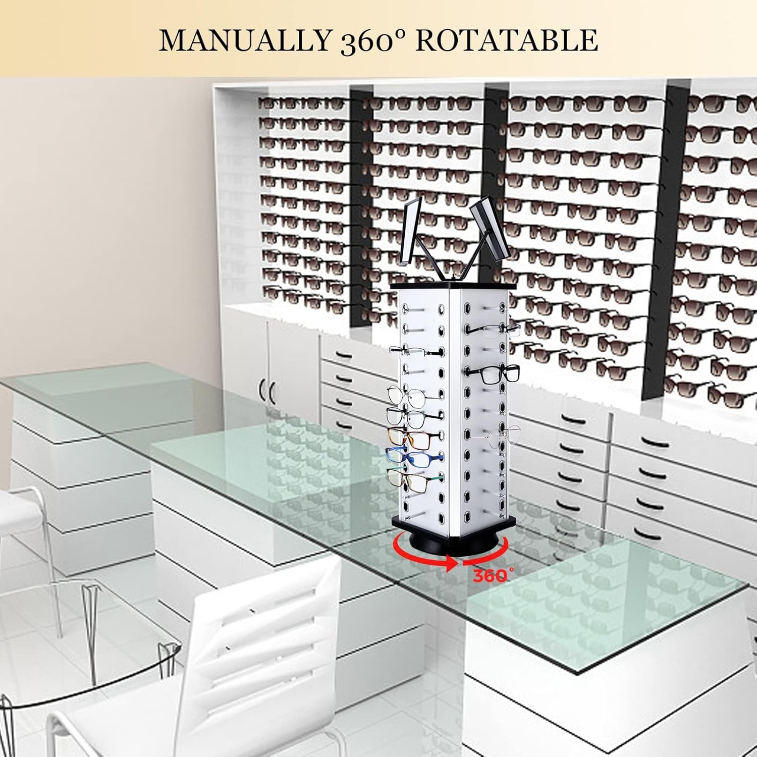 VARIPOWDER Upgrade Rotating Glasses Display Stand Sunglasses Holder Organizer Rack Eyeglass Turning Commercial Display Stand with Mirror for 44 Pairs of Glasses
