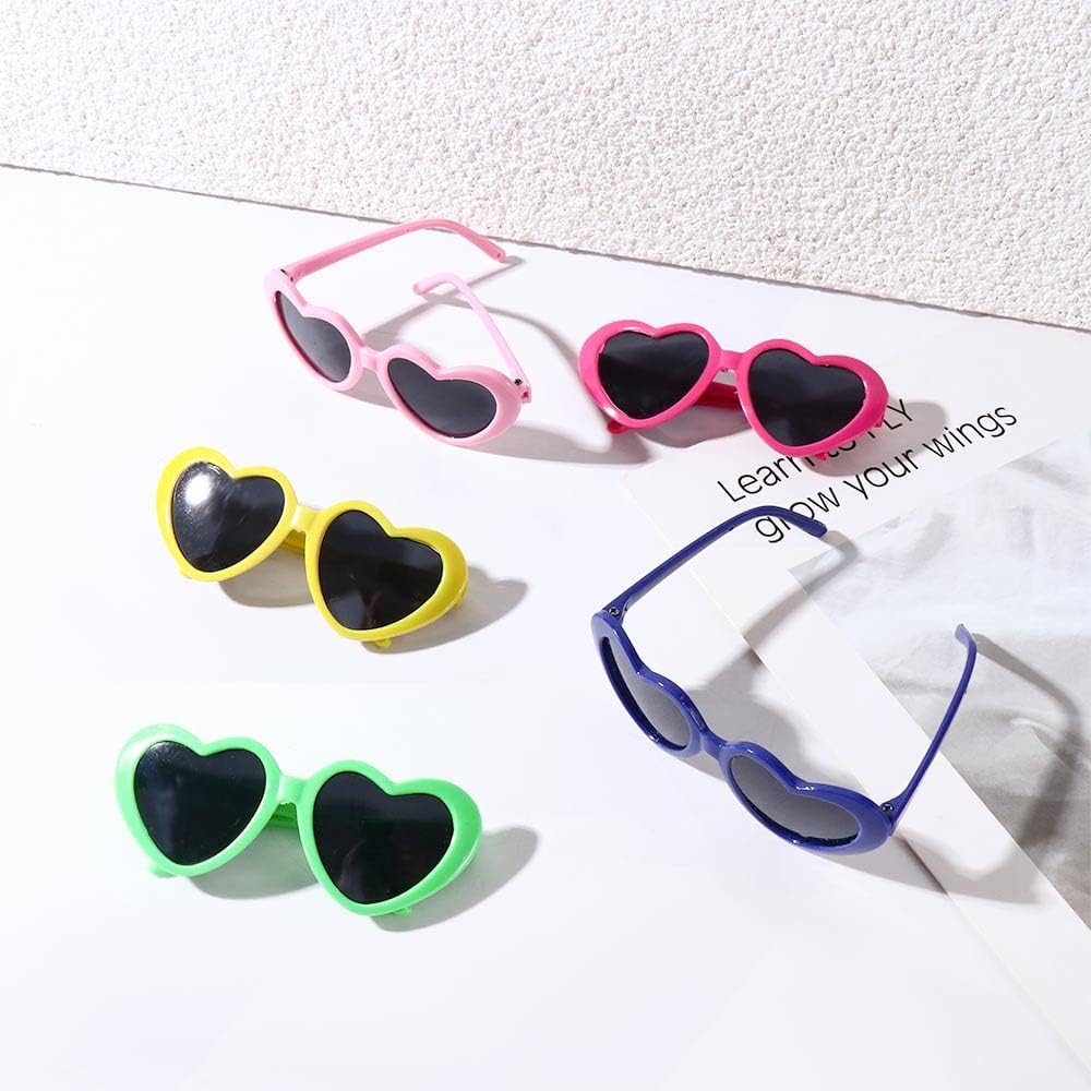 Vctitil 9 Pcs Dog Cat Sunglasses Cute Heart Pet Glasses Photo Props Eyewear Multicolor Cosplay Glasses Dolls Sunglasses Pet Accessories