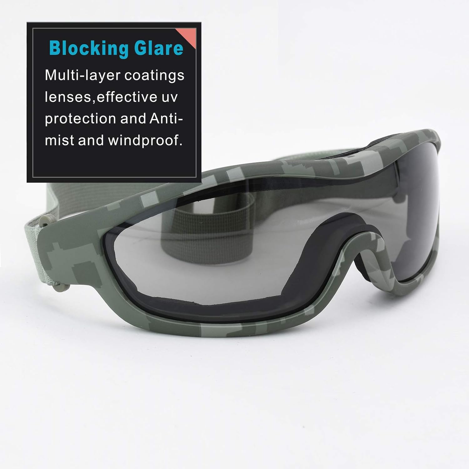 Viriber Motorcycle Goggles – UV Protective Outdoor Glasses, Dust-proof Combat Goggles, Military Sunglasses – Camouflage
