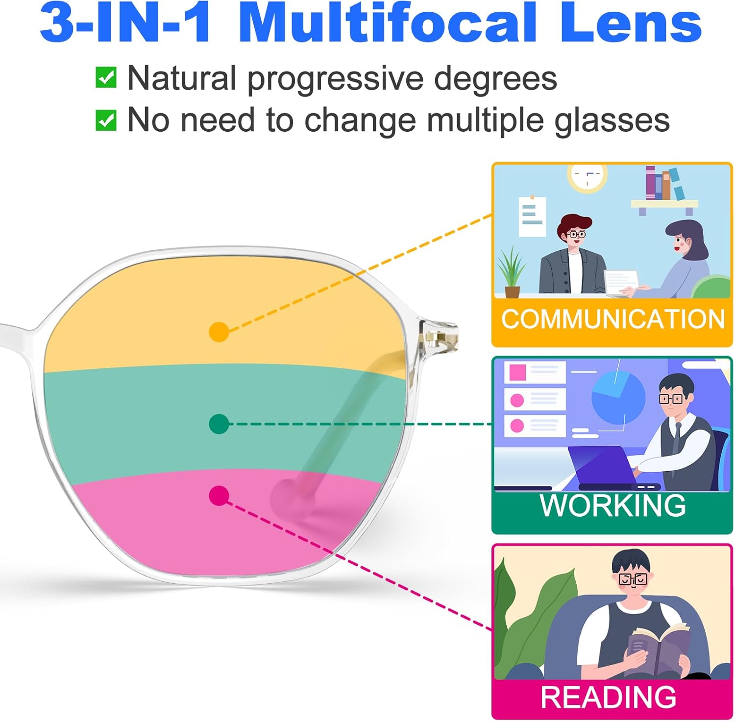 VISOONE Lightweight Progressive Multifocal Anti-Fog Reading Glasses TR90 with Blue Light Blocking Stylish Women Men RANE
