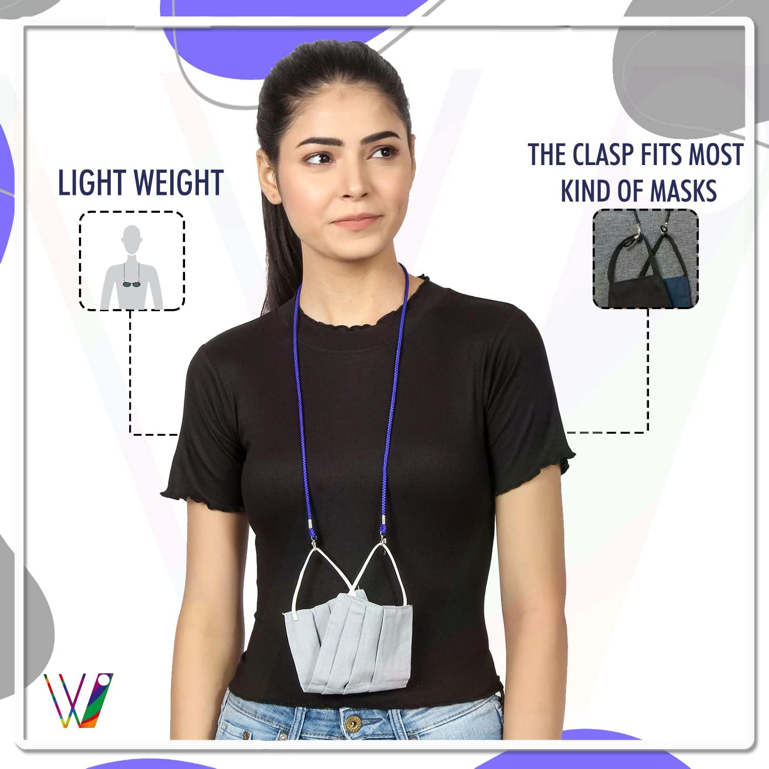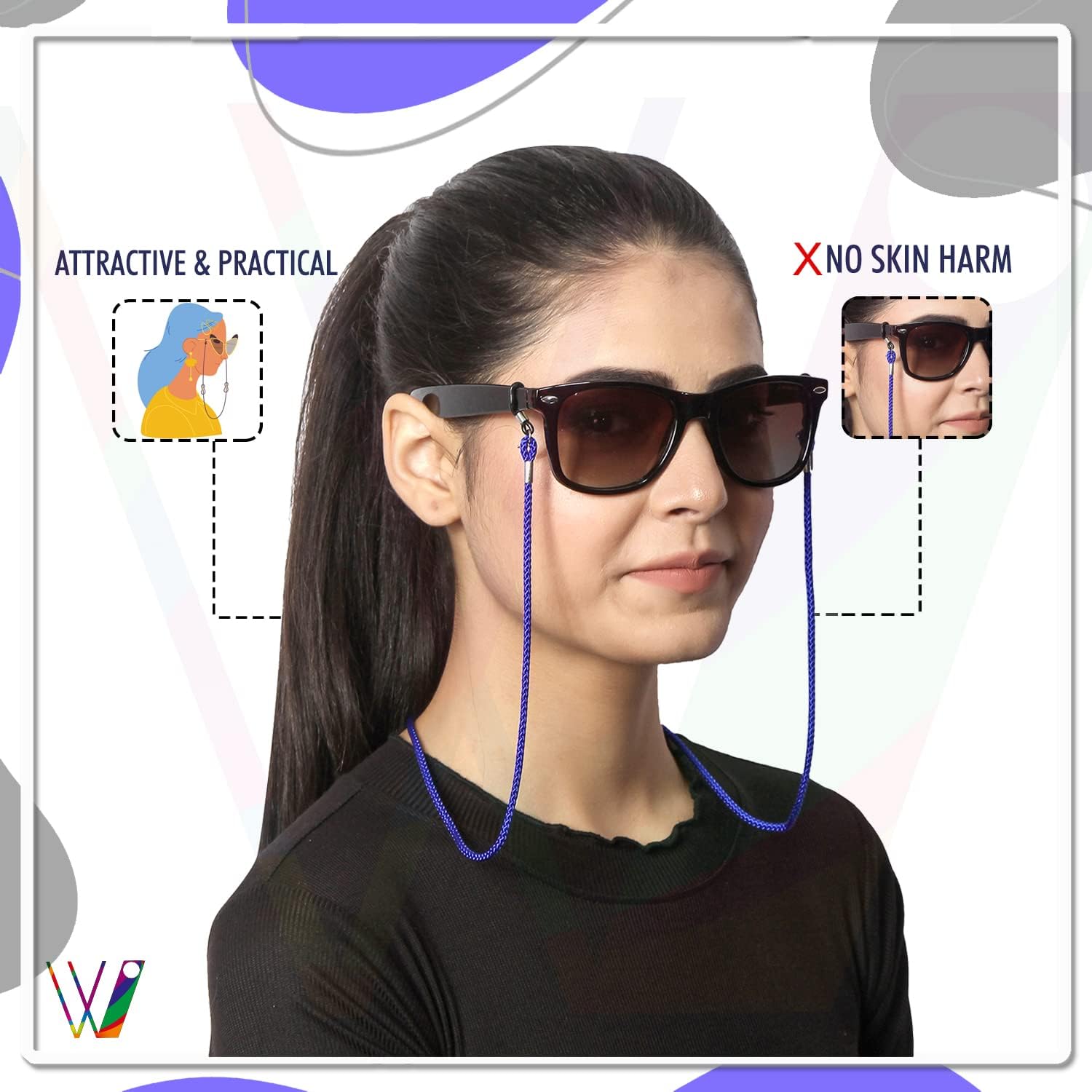 VIVID vision Unisex Adult Fabric Eyeglass Holder Strap Cord, New Chain Adjust on Sunglasses, Anti-slip Retainer Lanyard String Eyewear Frame, CH-154, Blue