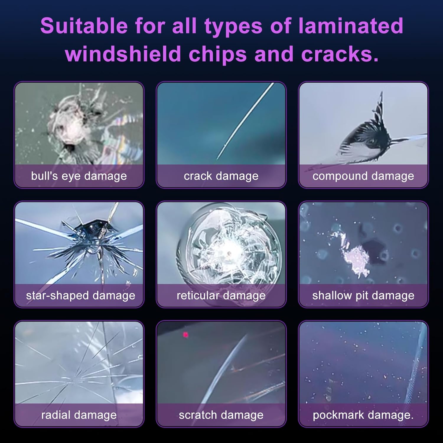 【Widely Used】: Glass repair kit suitable for all types of laminated windscreen chips and cracks repairment, such as bulls-eye, half-moon cracks, loophole, cobwebs, star-shaped damage, long line crack, scratch etc.