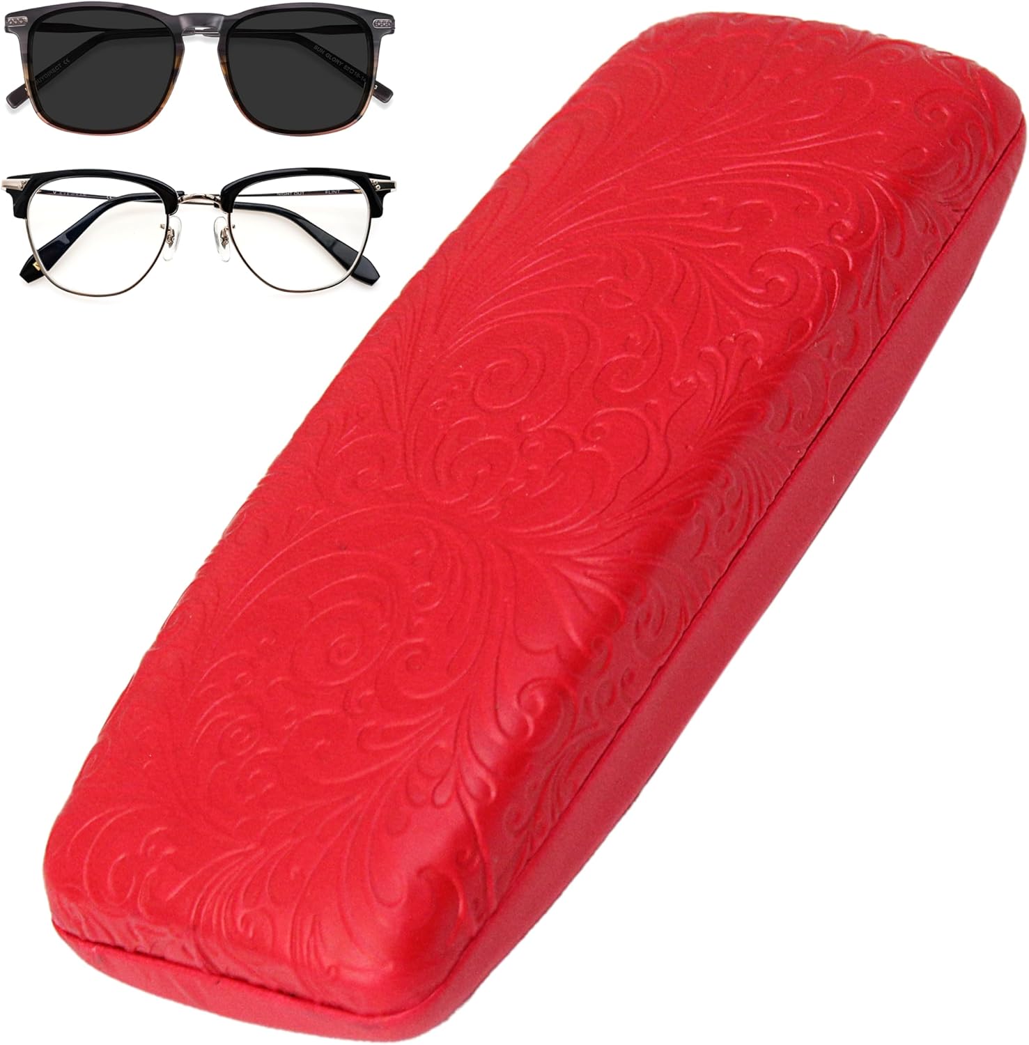 Women’s Hard Eyeglass Shell Case with Floral Embossing – Premium PU Leather Glasses Hard Shell Red Purple Black Brown