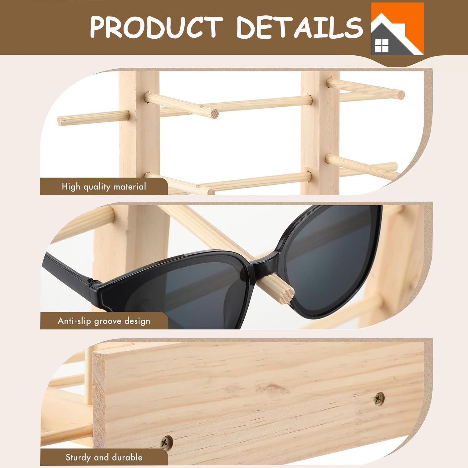 【Sturdy Materials】Our 10 pair picket sun shades holder organizer is fabricated from sturdy pine wooden materials, clean and no burrs, stable construction, not simple to deformation and won’t rust. A really helpful picket glasses show rack|picket glasses show stand, excellent for organizing, holding and displaying sun shades, eyeglass and glasses