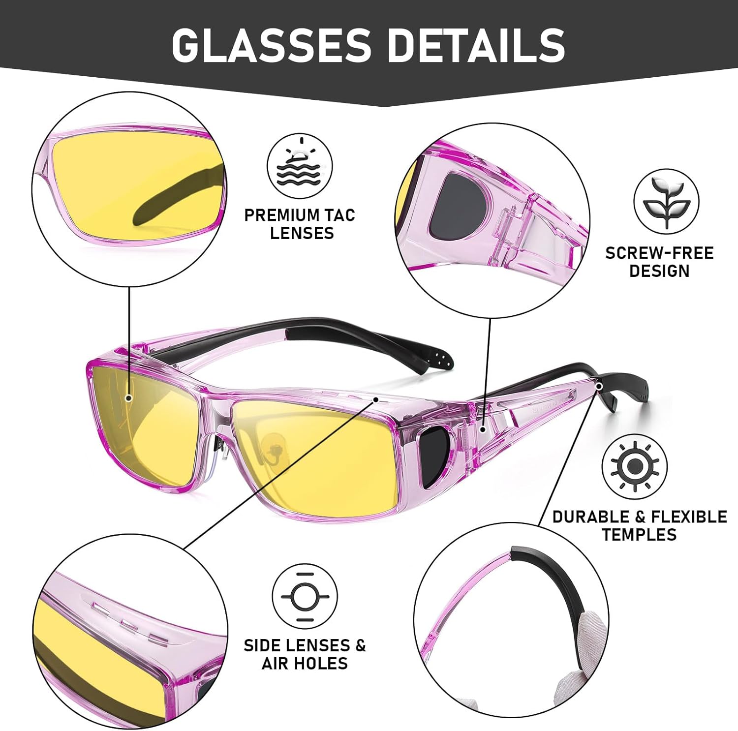 Particularly designed to suit over prescription glasses, our sun shades accommodate frames as much as 5.59 inches in width and 1.57 inches in peak. The ergonomic wrap-around design ensures a cushty match, with outsized shades providing in depth protection to guard your eyes from irreversible UV injury. Aspect lenses improve peripheral imaginative and prescient and supply further glare safety, making these sun shades good for driving and different outside actions.