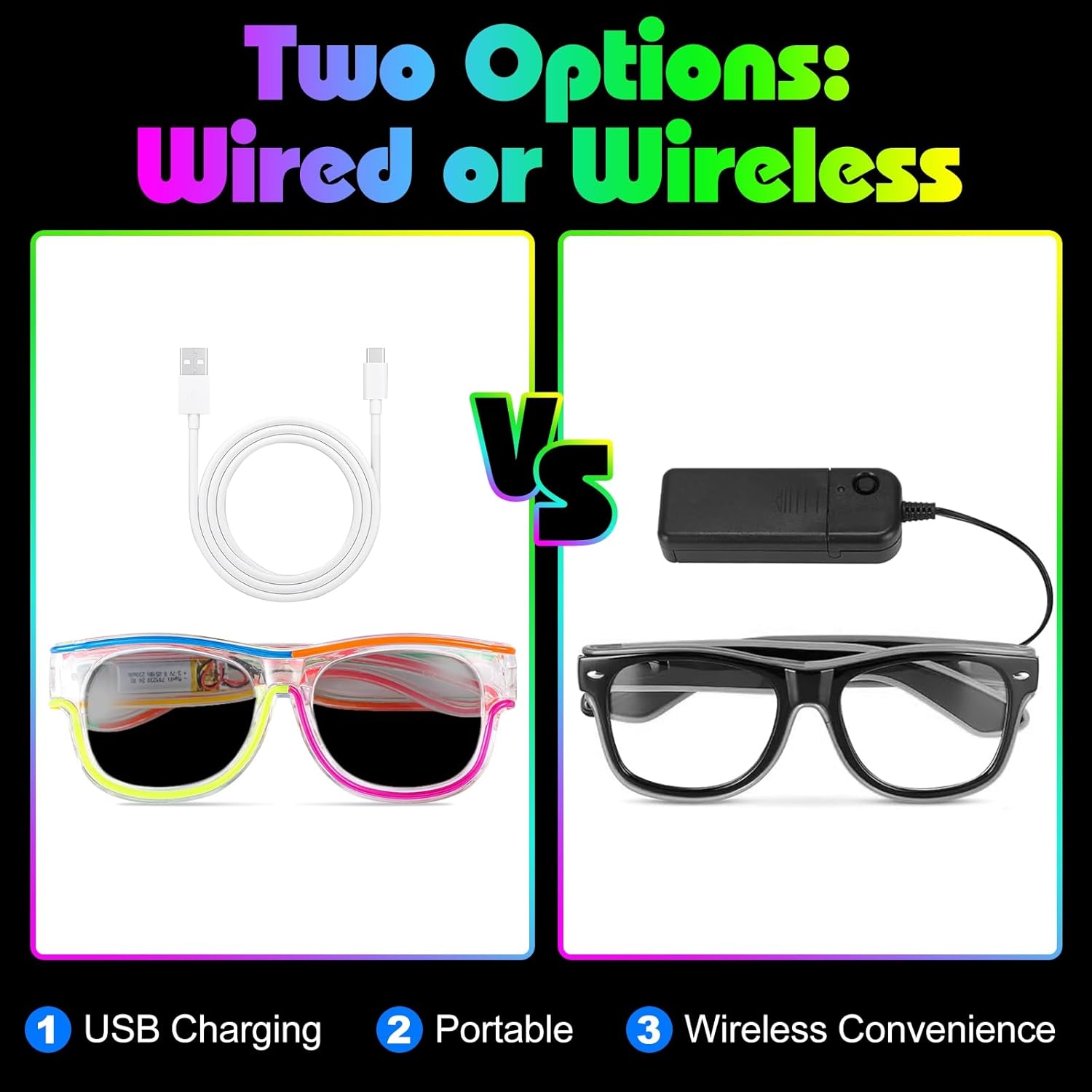 XGOOD LED Glasses Multi-Color (8 Colors) Light Up Glasses w/o Wires Neon Glow Glasses for KTV, EDM, Rave Parties and Cosplay