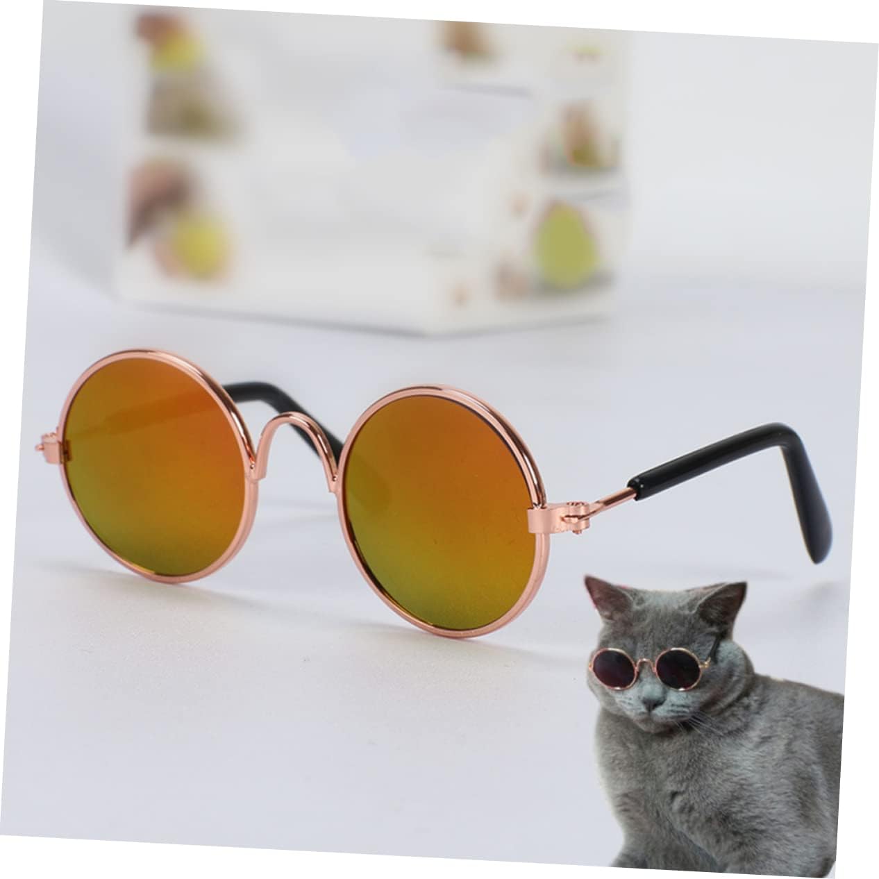 Decor spoof glasses:metallic and plastic supplies are light-weight and sturdy, your pet can put on it for a very long time,humorous cat glasses