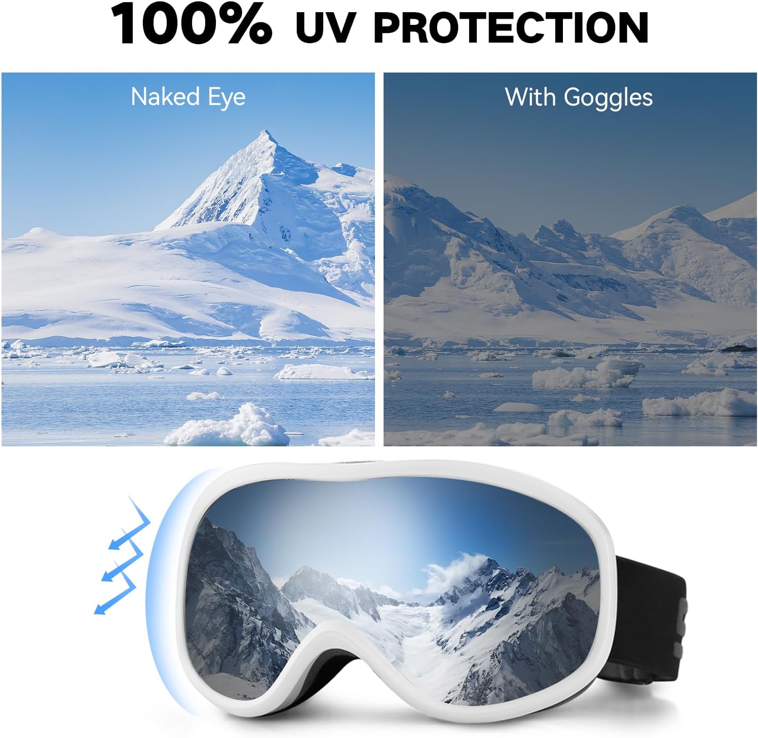 Even on cloudy days, YLYUELANG ski goggles are particularly designed to dam 100% of UV rays, defending your eyes and pores and skin from potential injury whereas snowboarding.