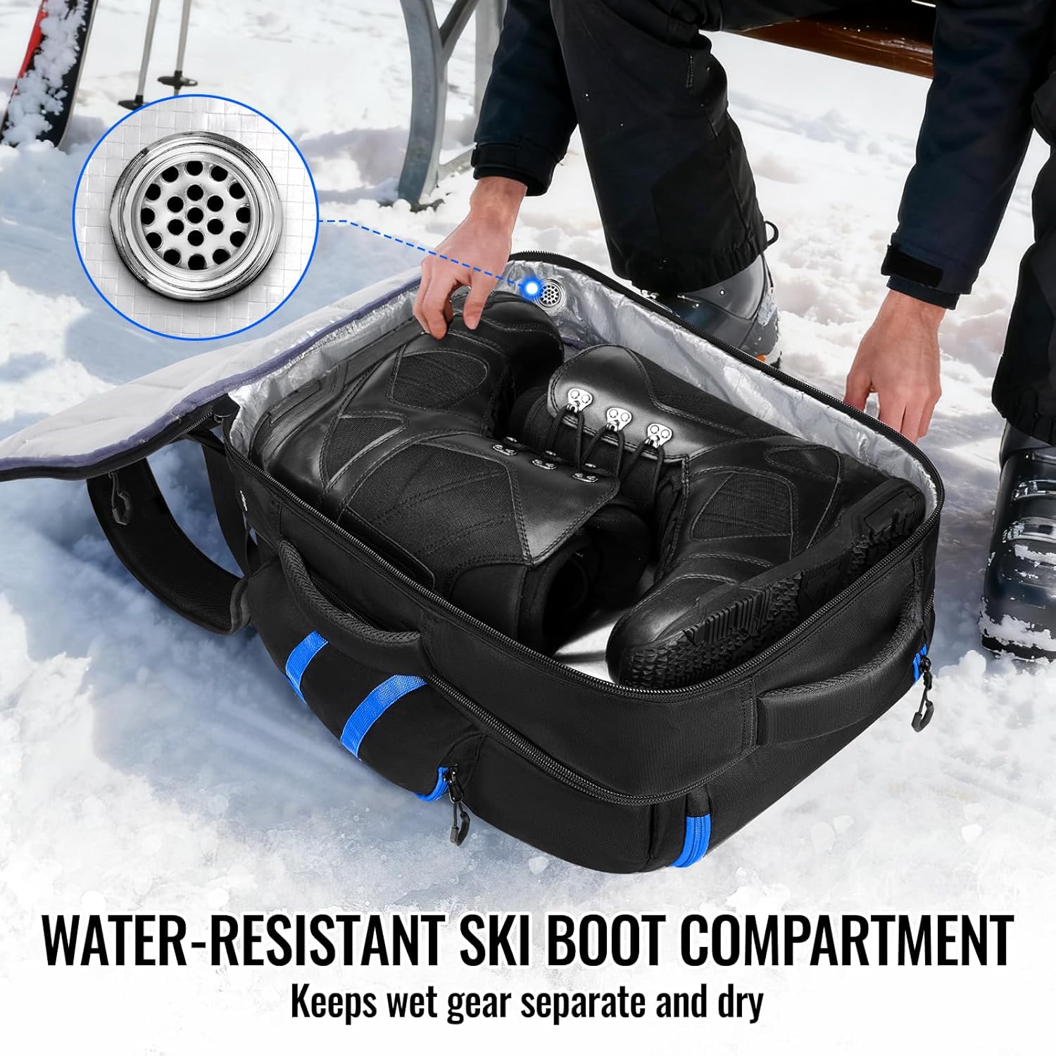 Entrance & Facet Storage for Equipment: After securing your principal ski gear, use the entrance pockets for gloves, hats, or valuables, and the aspect pockets for a water bottle or towel; This multi-compartment snowboard gear bag gives versatile area for all snow necessities; Observe the packing information to be used: boots flat, helmet and jacket within the middle, and equipment upfront—making ski boots bag your all-in-one winter journey resolution;