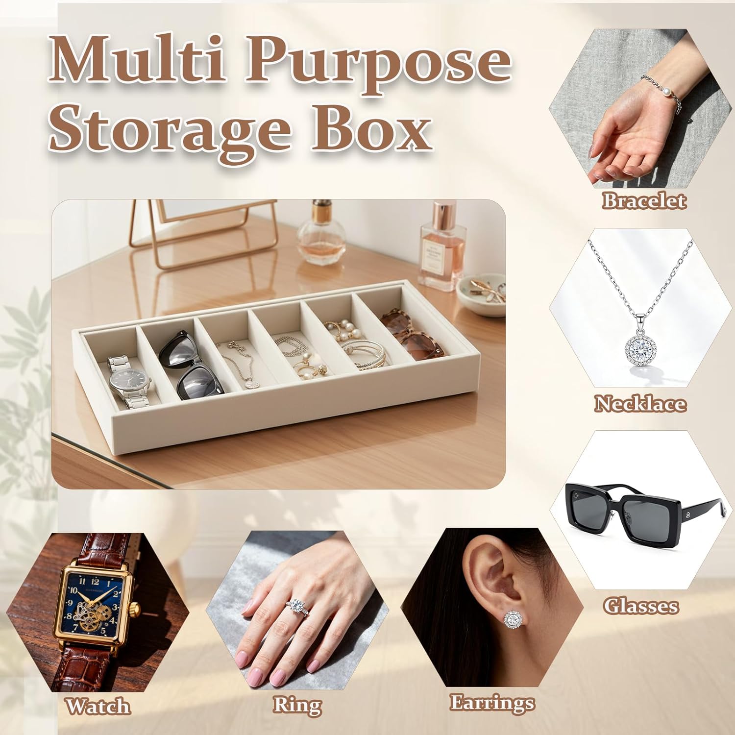 Versatile Divider Design: Every sun shades tray options adjustable dividers, permitting you to customise the compartments based mostly in your wants — ultimate for sun shades, watches, necklaces, bracelets, earrings, or different equipment