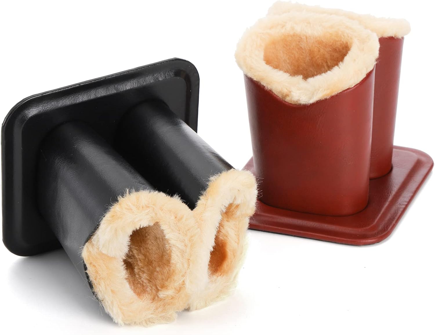 ZOOFOX 2 Pack Double Eyeglasses Holder, Plush Lined Leather Glasses Stand Case for Desk or Nightstand